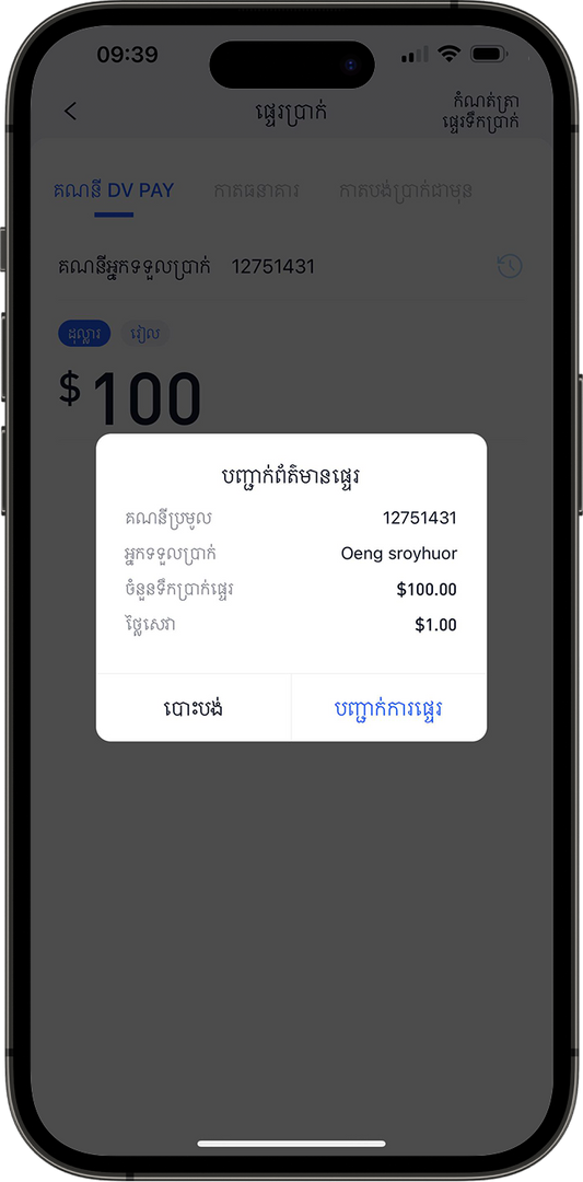 DVPay គឺជាក្រុមហ៊ុនសេវាទូទាត់ប្រាក់ដែលមានមូលដ្ឋាននៅក្នុងប្រទេសកម្ពុជា ដែលផ្តល់សេវាកម្មដូចជា ការផ្ទេរប្រាក់ ការដកប្រាក់ ការដកប្រាក់តាមអេឡិចត្រូនិក និងការទូទាត់វិក្កយបត្រដោយភ្នាក់ងារទូទាំងប្រទេស និងកម្មវិធីអ្នកប្រើប្រាស់ទូរស័ព្ទ